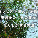 2019年3月29日 / 最終更新日 : 2019年4月14日 spiritualamala セラピストお役立ち 「できる」セラピストは知っている。施術後の「あの疲れ」をなんとかする方法。④ こんにちは、スピリチュアルあまらです。 施術の後にやってくる「あの疲れ」をなんとかしたい方にオススメの記事です。 「あの疲れ」をなんとか […]